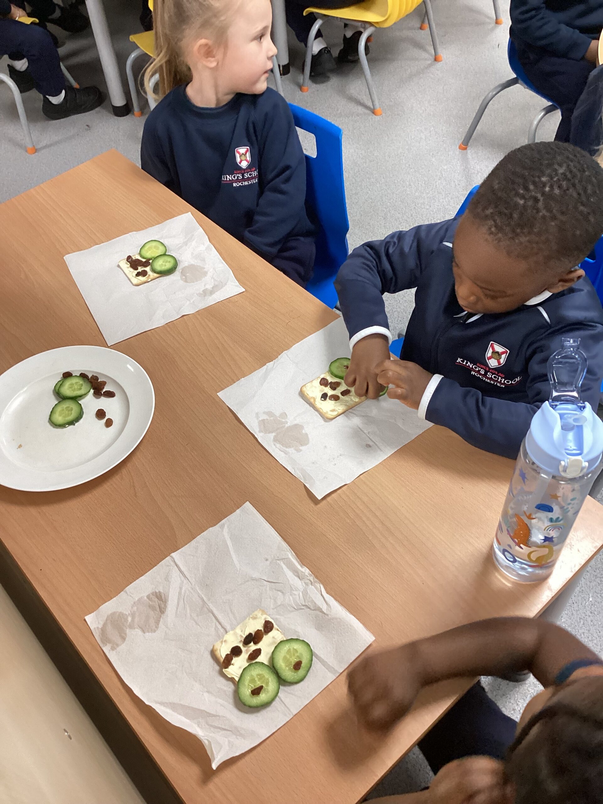This week, as part of our exploration of traditional tales, Nursery are focusing on The Three Billy Goats Gruff. The children used bread, vegan spread and raisins to create faces, using crusts and raisins for the eyes, ears, horns and beard. [...]