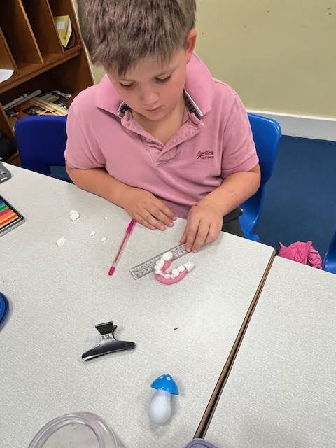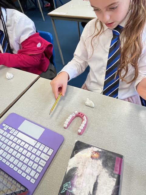 Year 4 have been studying digestion and have explored teeth and the functions of different types of teeth. Thinking about how many of each type we have and the shape of each one, the children then made their own set of teeth out of icing (and may have sneakily eaten the odd bit too!).