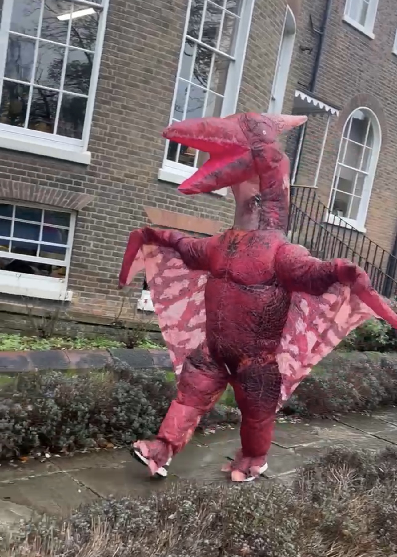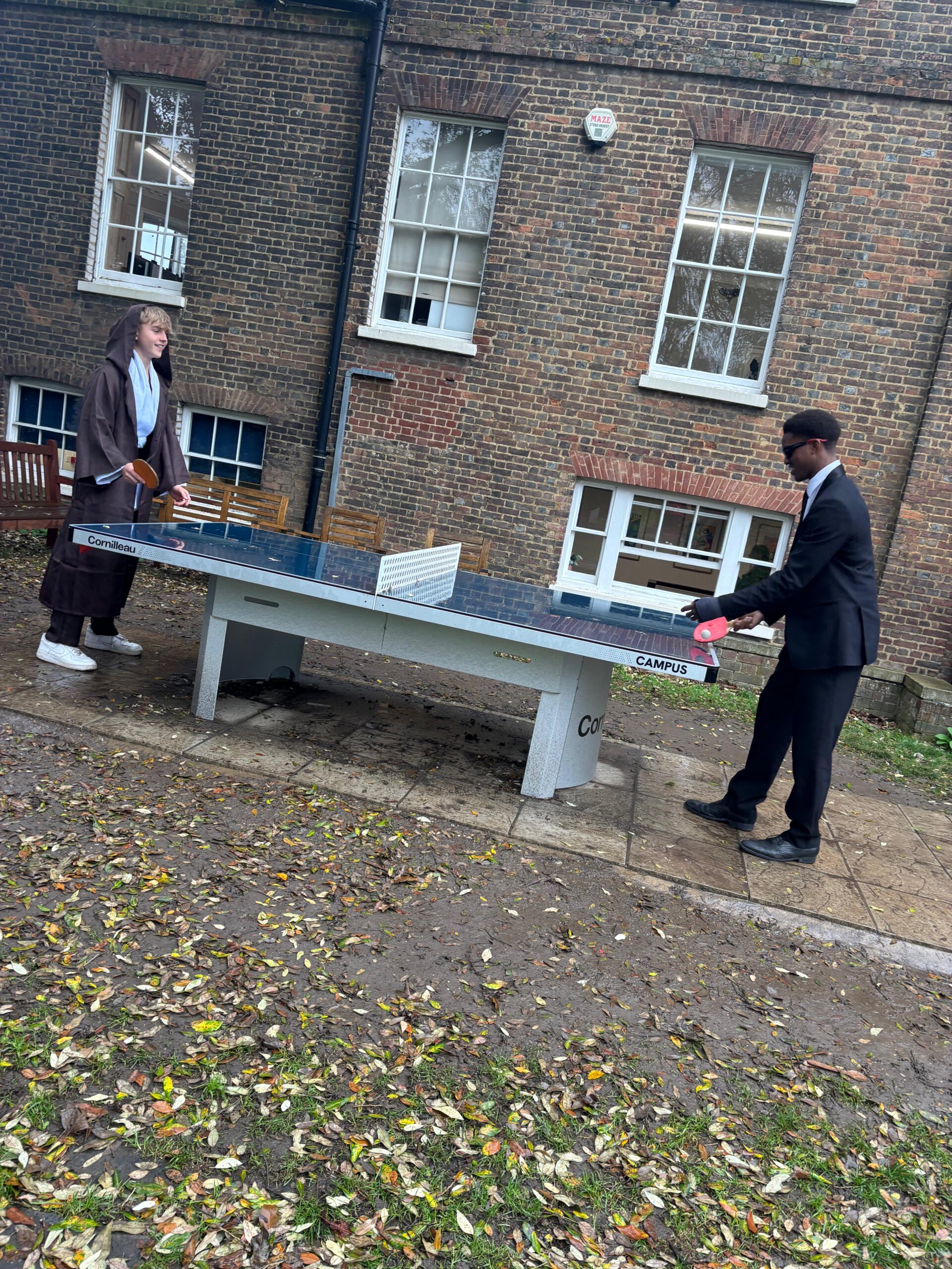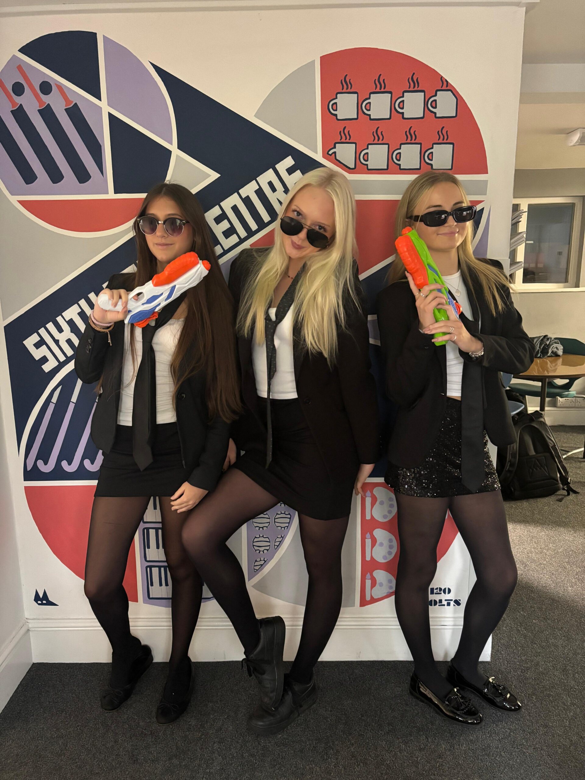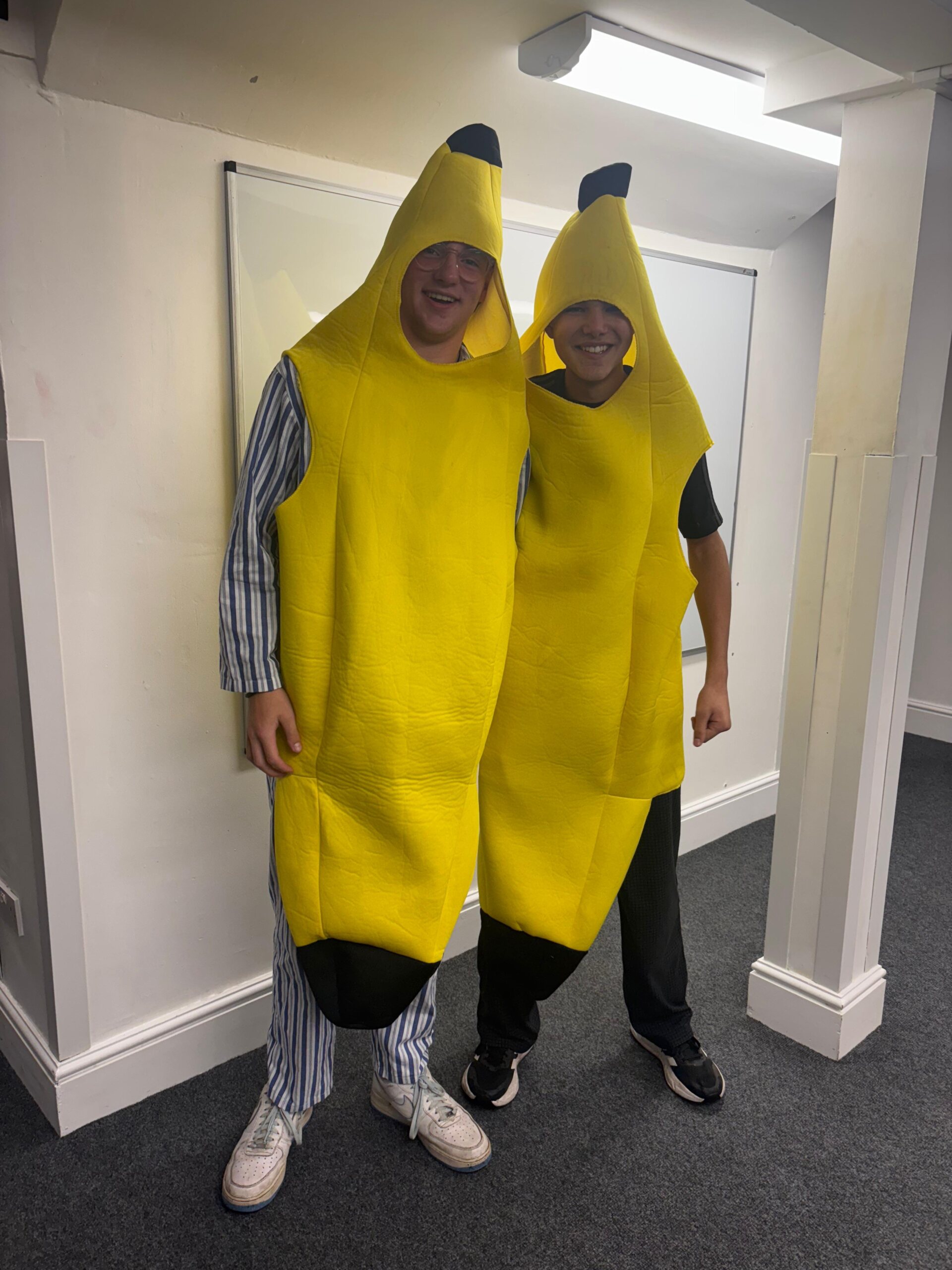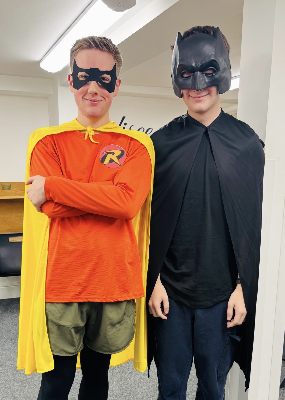 The annual Children in Need fancy dress day saw the Sixth Former Centre full of weird and wonderful characters with both staff and pupils participating. Dominating the scene was a magnificent giant pterodactyl with the pupil valiantly battling to manoeuvre through school corridors and the cobbles of Rochester. A spirited contingent of cowboys and cowgirls brought the Wild West to the school halls while the cast of Shrek were looking Shrek-tacular. Perhaps the most unexpected sight was a solemn group of disciples, whose traditional robes and serious expressions were immediately undermined by the sheer absurdity of posing for pictures next to a Rubik’s Cube, a banana, a sailor and Benson Boone. Well done to all our Sixth Formers for their gallant efforts in supporting Children in Need and congratulations to Oscar H, dressed as the chef from Shrek, who Mr Fisher picked as the winner!