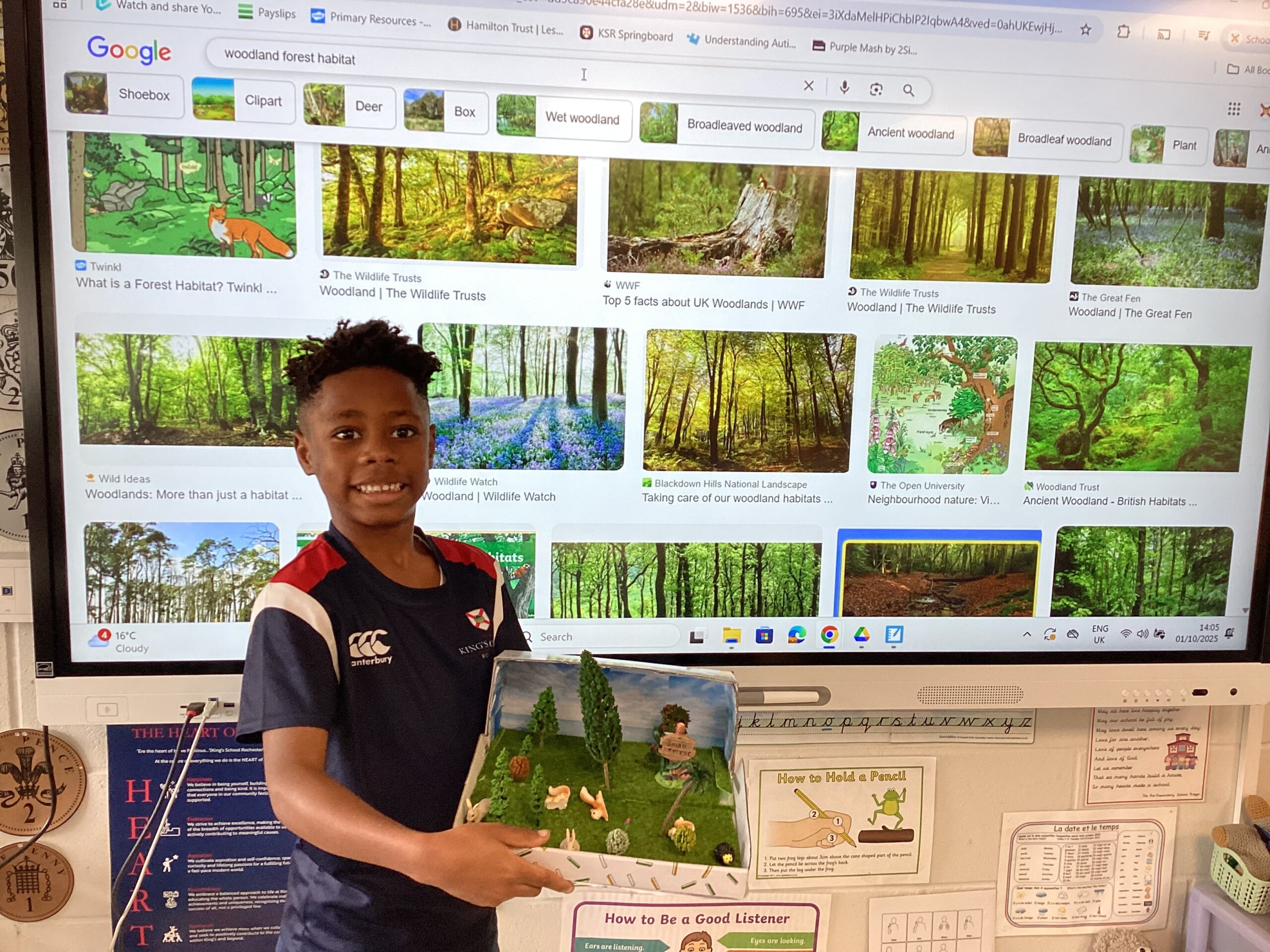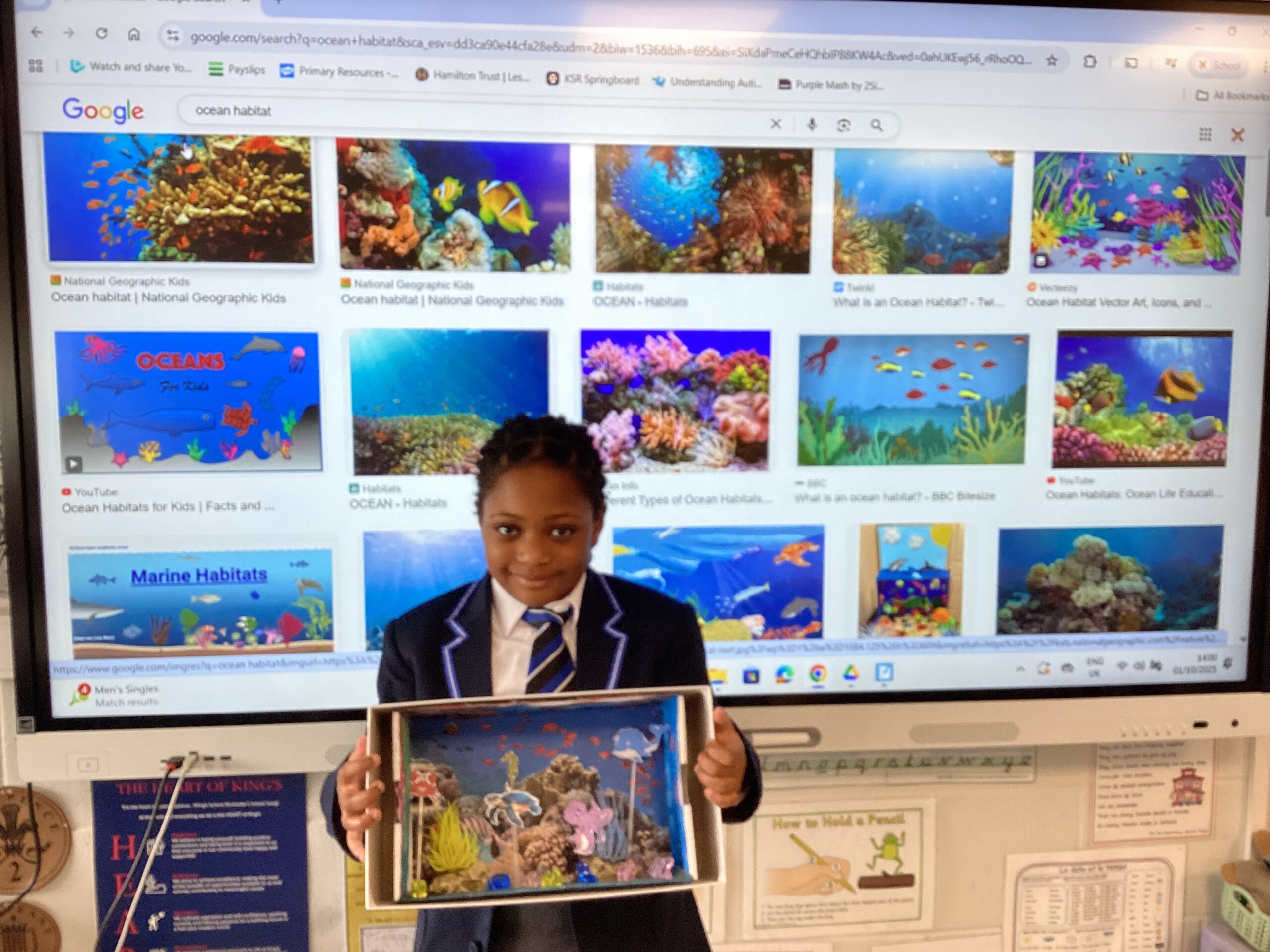 In science Year 2 have been learning that habitats can be small and local, but also very extensive. The children brought in many exciting dioramas of major habitats and thoroughly enjoyed presenting these to the class. They researched what makes each creature perfectly adapted to its habitat and explained the materials they used to build their ecosystems.