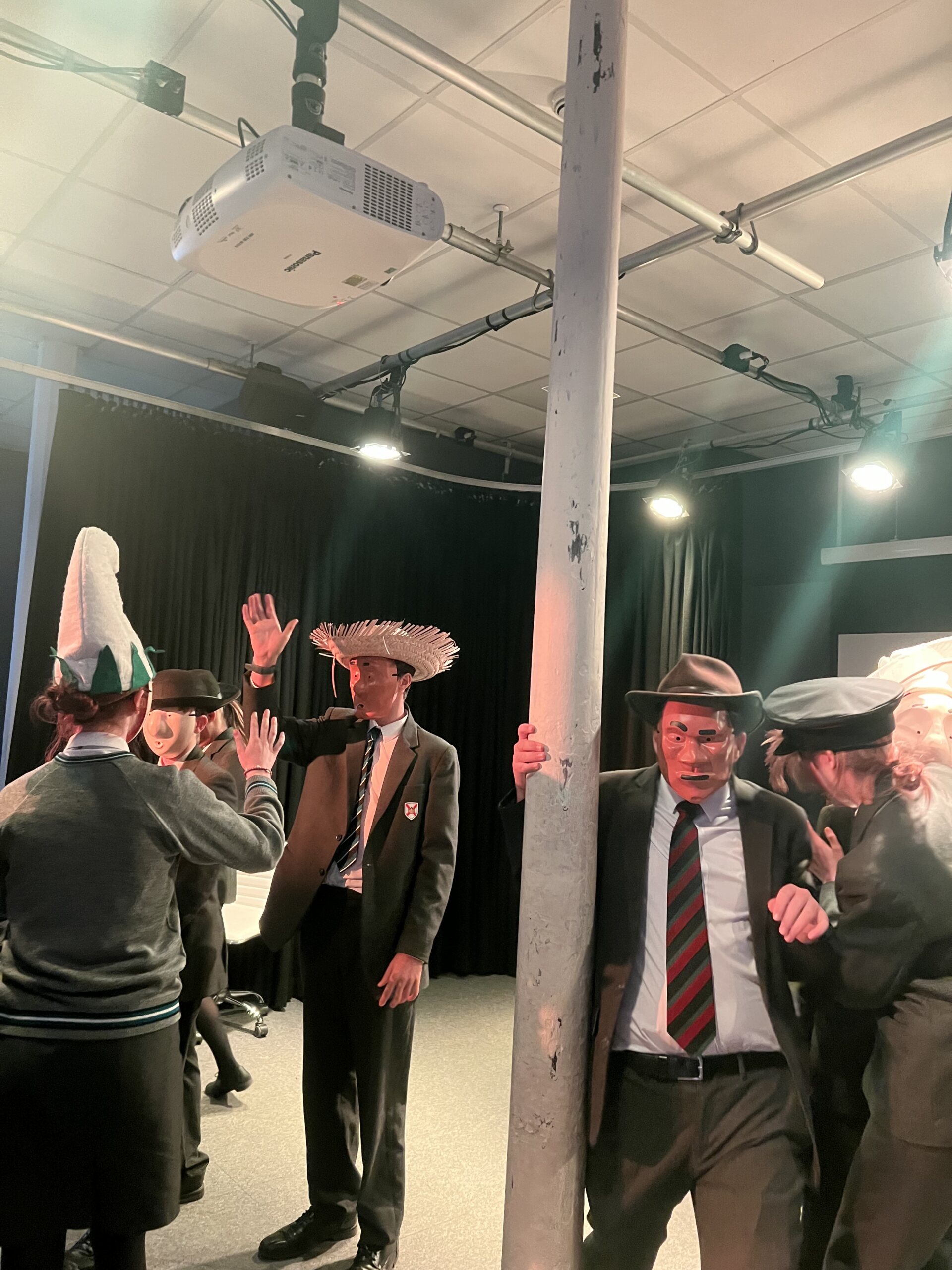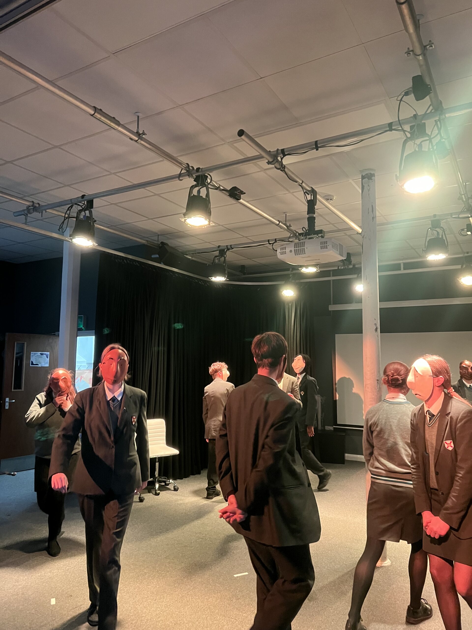 Lower Fifth pupils explored physical theatre using Trestle masks — taking on the expression of the mask and adapting their body language to suit their character through dramatic movement, posture, and gesture. This built on their recent work studying Brecht and his techniques.