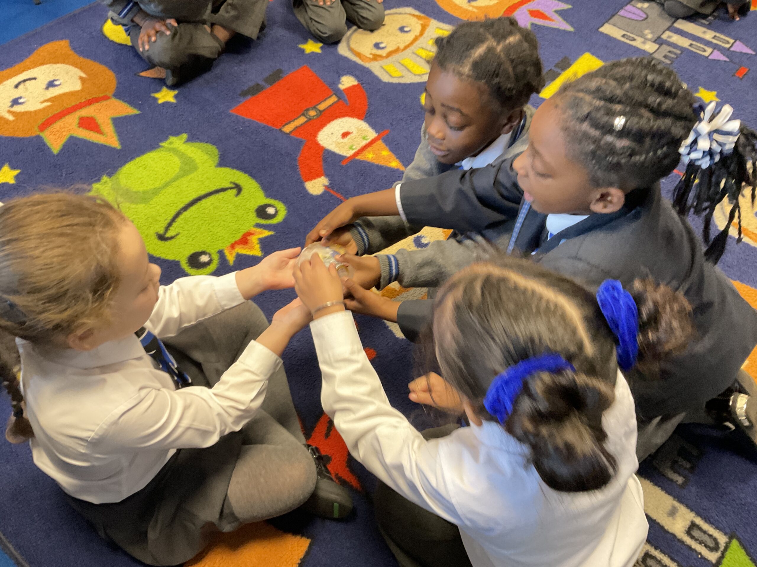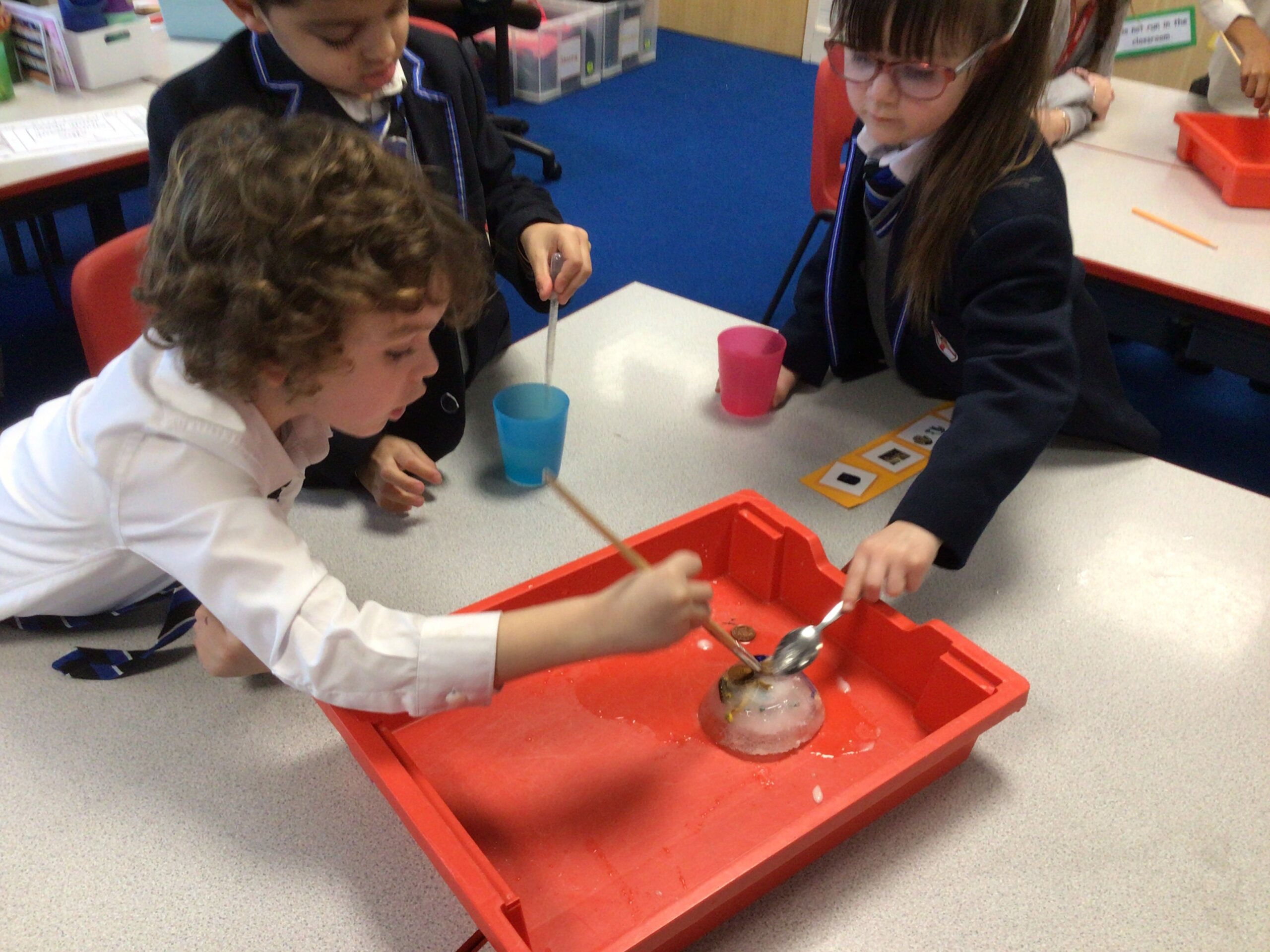 Year 1 took part in a STEM activity linked to their Antarctica topic. Some tiny explorers and their treasure had become trapped inside a giant glacier. The task was to free them quickly and safely using tools from the rescue kit: warm water, salt, a metal spoon and a brush. The children had lots of fun exploring how to melt the ice, making predictions and using scientific vocabulary. Luckily, they managed to rescue all the tiny explorers!