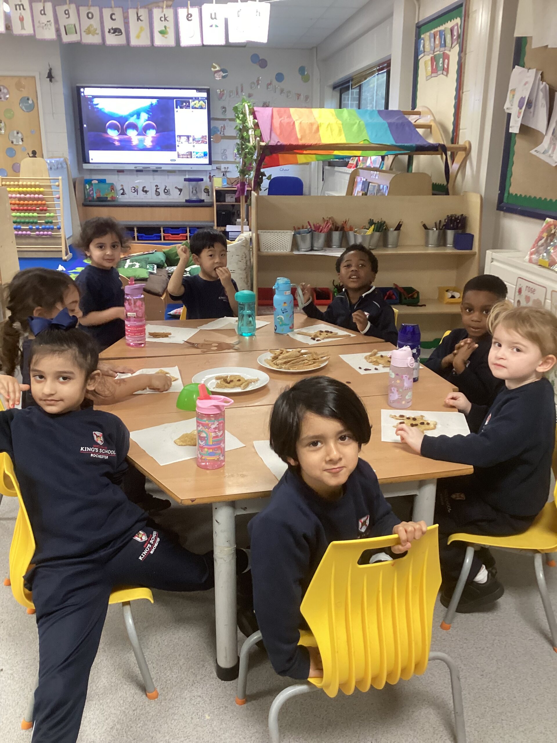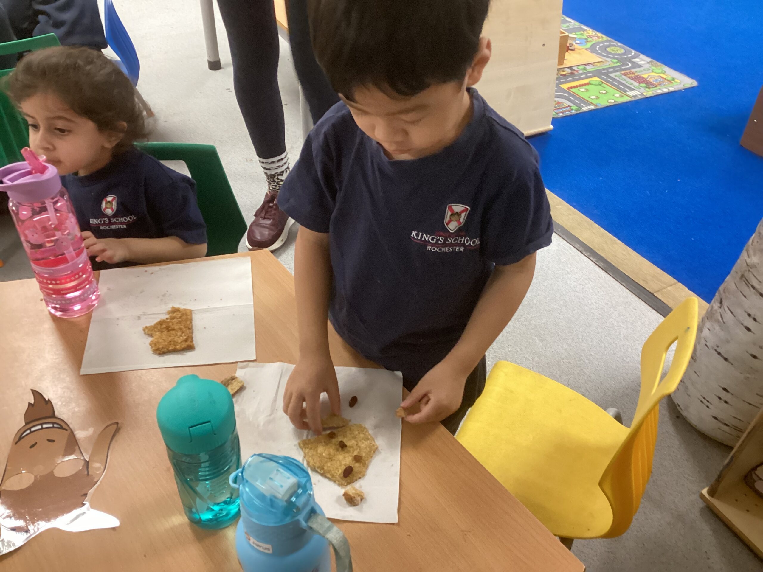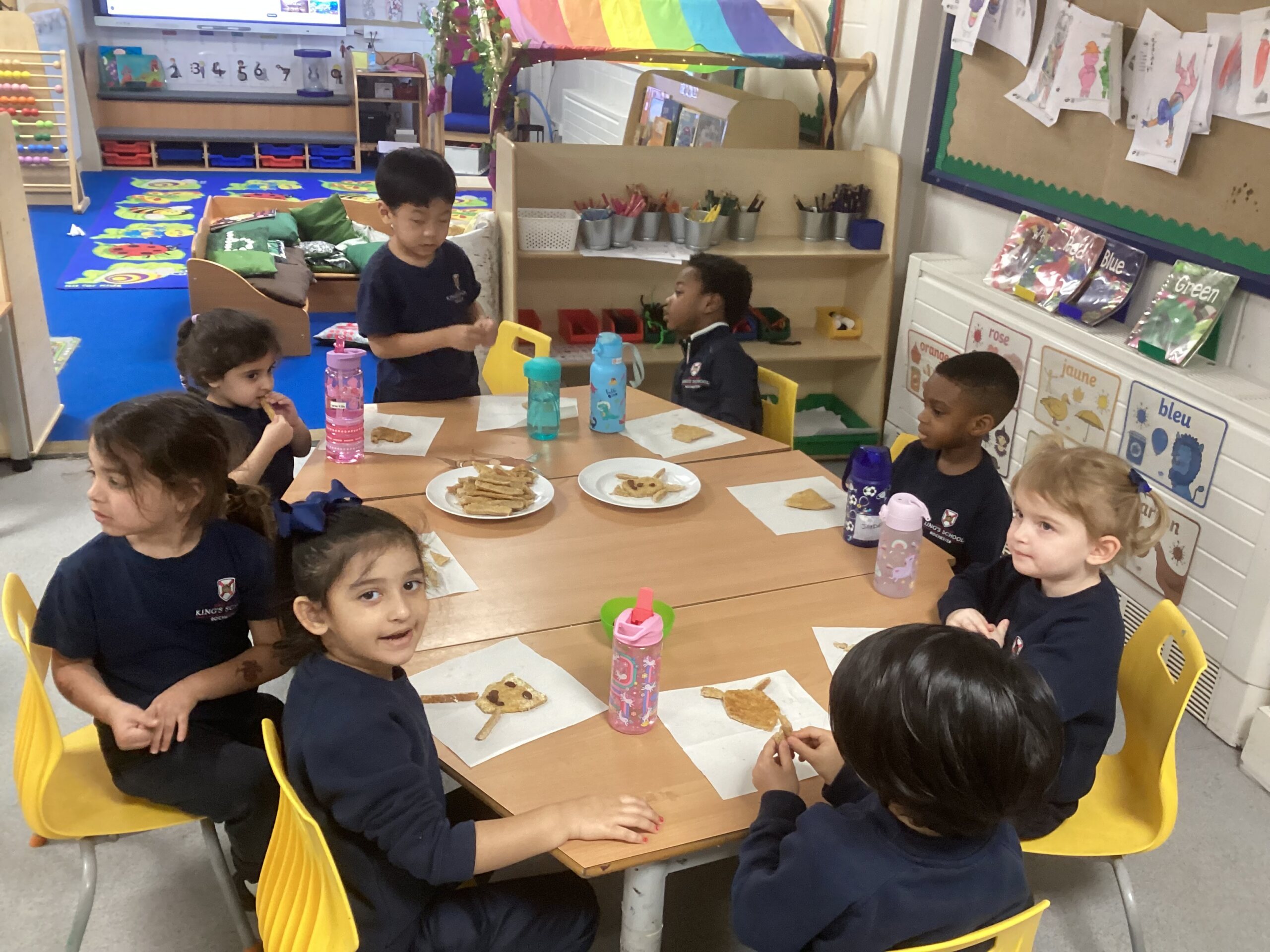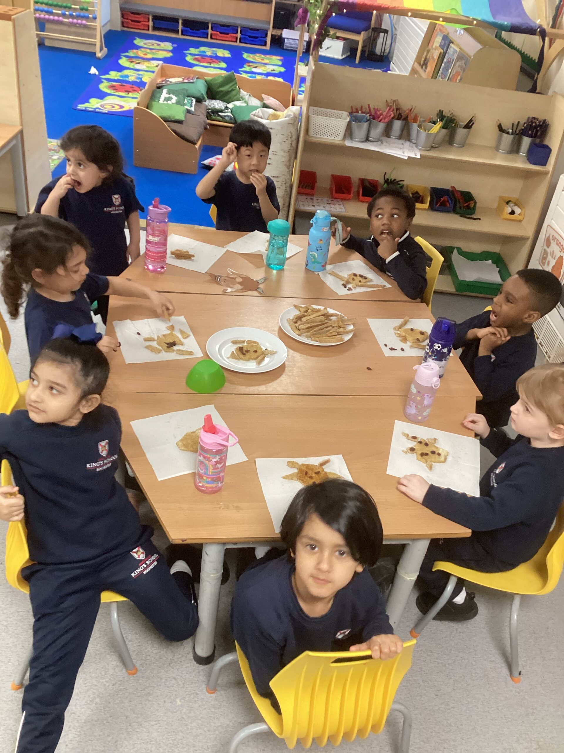 This week, as part of our exploration of traditional tales, Nursery are focusing on The Three Billy Goats Gruff. The children used bread, vegan spread and raisins to create faces, using crusts and raisins for the eyes, ears, horns and beard.